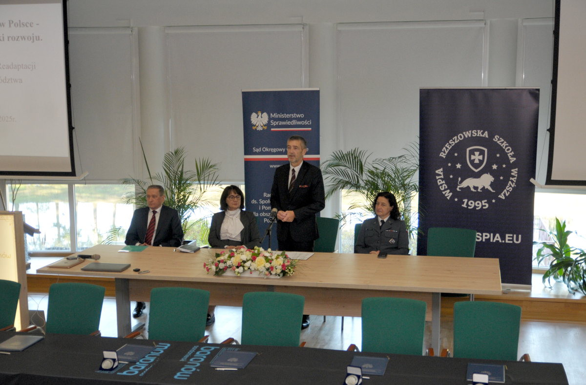 Jak podkreślił sędzia Arkadiusz Trojanowski, Prezes Sądu Okręgowego w Krośnie i przewodniczący Rady Terenowej ds. Społecznej Readaptacji i Pomocy Skazanym współczesny wymiar sprawiedliwości to nie tylko orzekanie i stosowanie prawa, ale również odpowiedzialność za kształtowanie postaw i wspieranie procesu resocjalizacji. Współpraca środowiska naukowego, sądów oraz Służby Więziennej ma kluczowe znaczenie dla skutecznego przygotowania skazanych do powrotu do społeczeństwa.