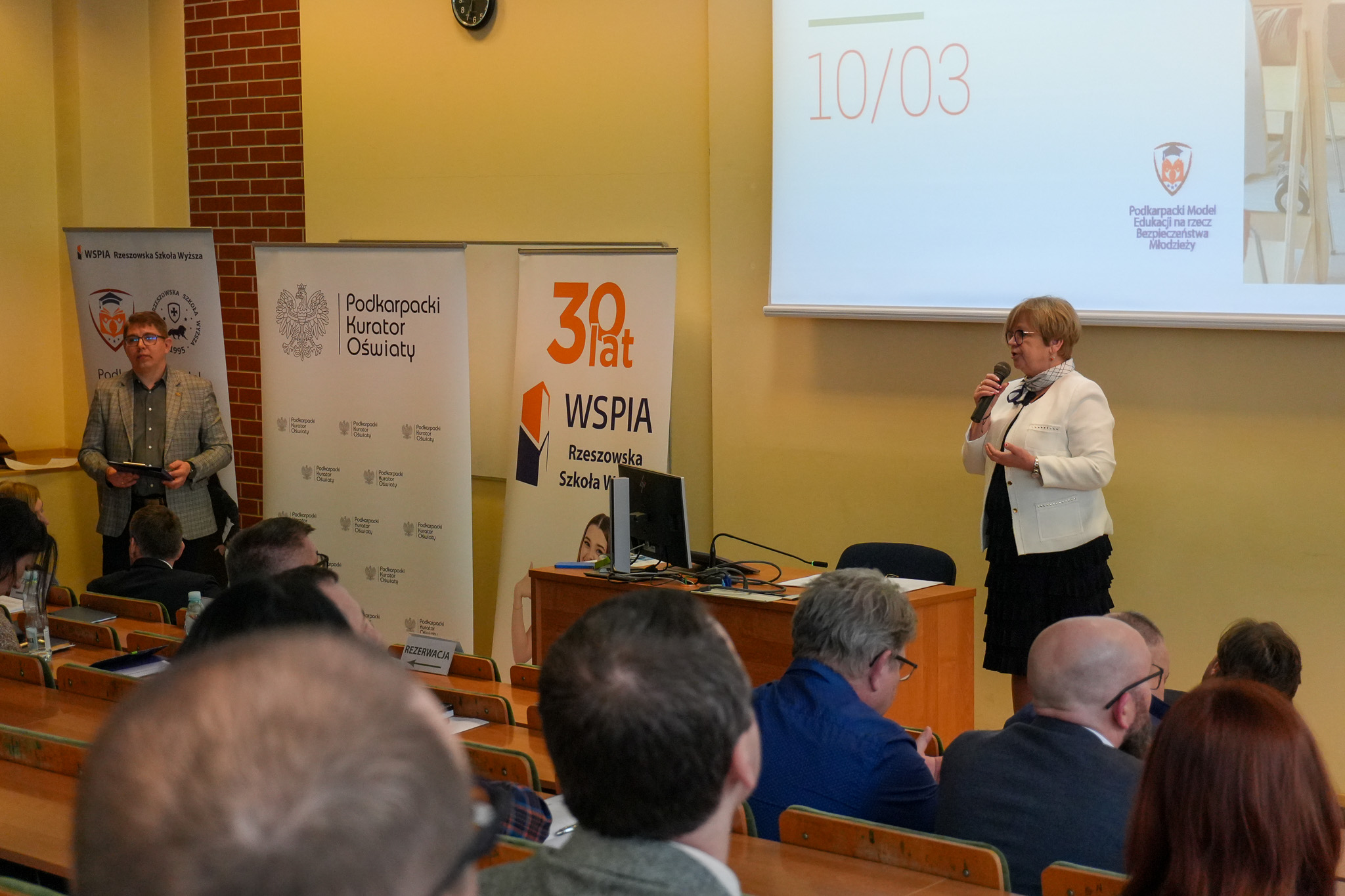 Szkolenie w WSPiA było kolejnym etapem działań związanych z budowaniem systemowego podejścia do edukacji na rzecz bezpieczeństwa w szkołach województwa podkarpackiego realizowanego przez WSPiA Rzeszowską Szkołę Wyższą oraz Podkarpackie Kuratorium Oświaty pod patronatem Wojewody Podkarpackiego.
