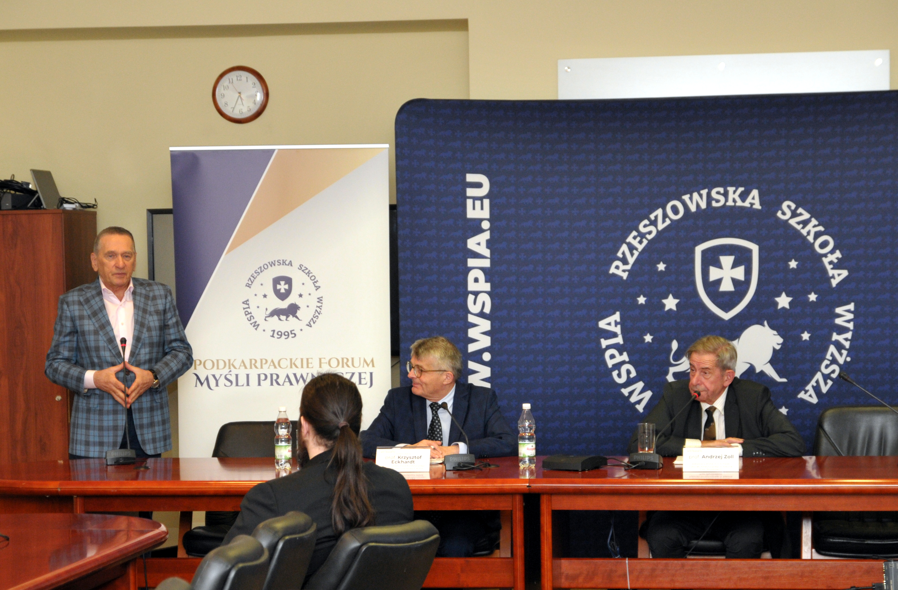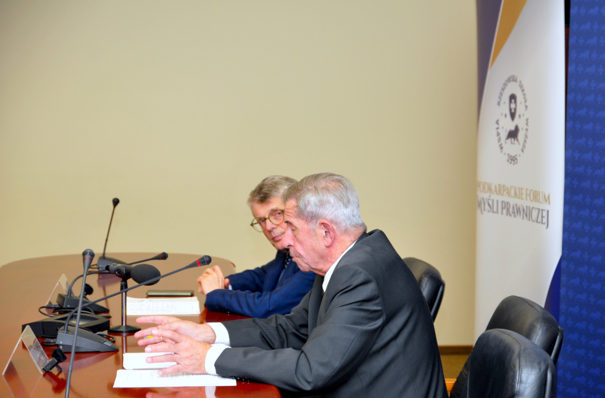 "Trybunał Konstytucyjny - teraźniejszość i przyszłość" tematem ostatniego w tym roku Podkarpackiego Forum Myśli Prawniczej. Gościem wydarzenia był prof. Andrzej Zoll, wykładowca WSPiA Rzeszowskiej Szkoły Wyższej, wybitny konstytucjonalista, sędzia, były Prezes Trybunału Konstytucyjnego i były rzecznik praw obywatelskich, który w swoim wystąpieniu przedstawił pogłębioną analizę funkcjonowania Trybunału - od momentu jego powstania w latach 80., przez okres transformacji ustrojowej, aż po aktualne wyzwania ustrojowe i prawne.